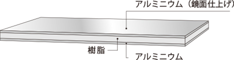アルハーツ®はガラス製ミラーとは異なり、アルミ複合版を使用した鏡面仕上げのパネルです。