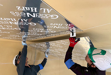脚立や足場を使って天井に貼る作業も少人数で簡単に貼り付けることが可能です。